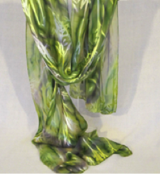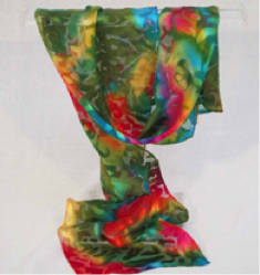 These scarves are designed and hand painted individually. They are colour fast and hand washable (see Technique and Care for specifics)