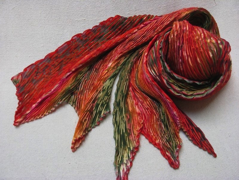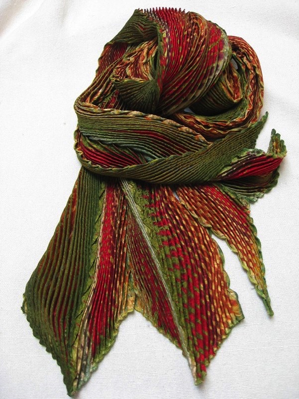 This scarf is suitable for wearing with most styles of clothing. Just the right length to wear untied with an open jacket or tied down the front of the body, and long enough to wind twice around the neck for warmth.